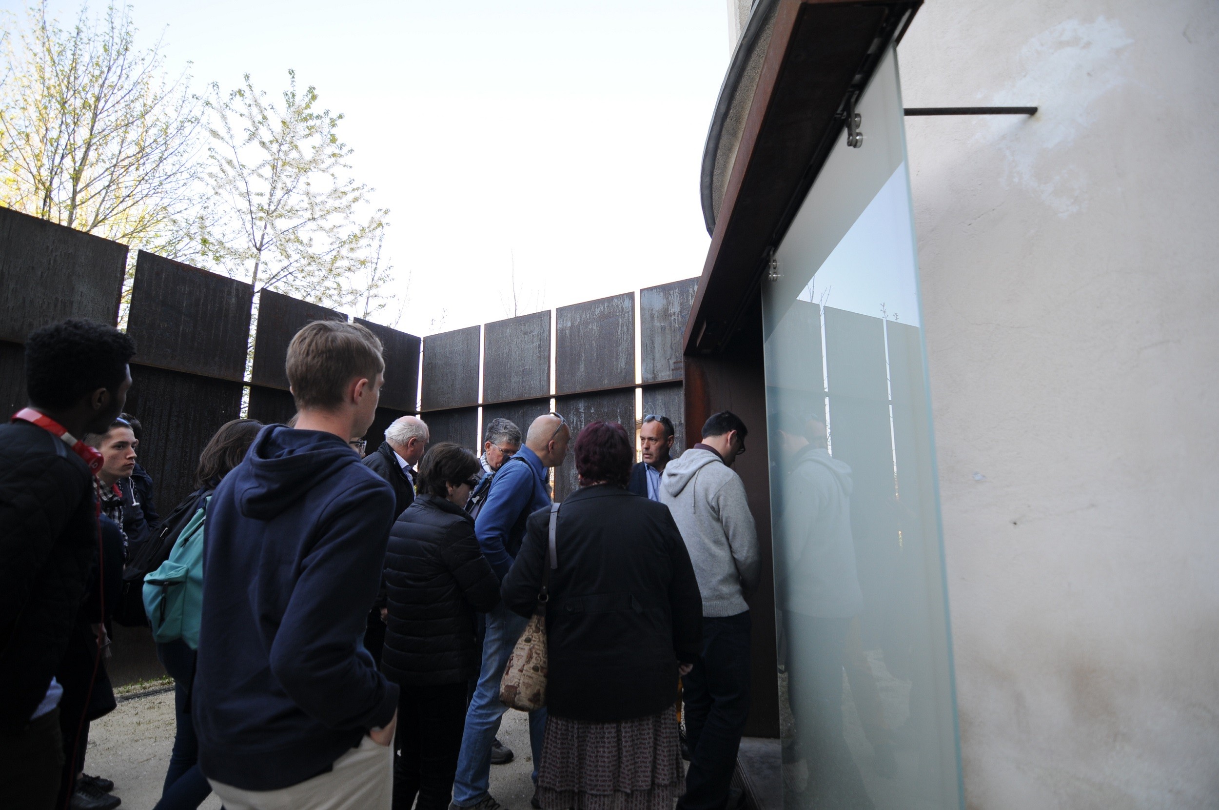 A l'intérieur du mémorial de Gusen, les lycéens effarés par ce qu'ils ont entendu de la bouche du guide -