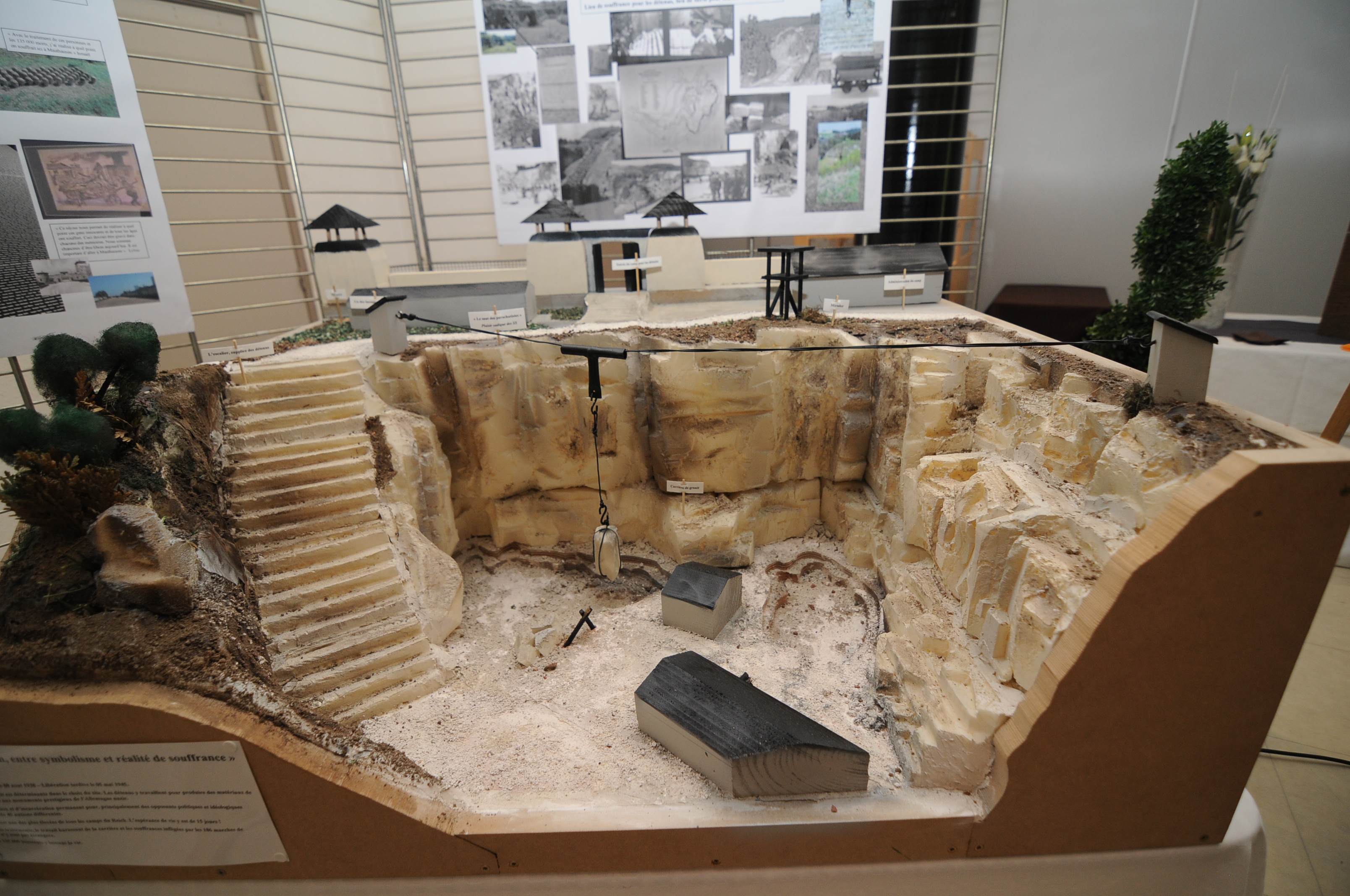 Mauthausen, Hartheim, Ebensee, Gusen.... Les images défilent dans le diaporama, Léonard Cohen chante "The Partisan" et Jean Ferrat "Nuit et Brouillard". Elles s'achèvent sur une version du Chant des Marais qui prend aux tripes. Les lycéens de retour de Mauthausen ont su faire passer dans leur exposition toute l'émotion qu'ils ont ressentie tout au long de ce voyage. Particulièrement remarquée, une maquette qui reconstitue la carrière de granit où périrent tant de détenus du camp principal de Mauthausen. Elle a été réalisée par les élèves charpentiers du lycée Funay, qui y ont passé leurs soirées pour que tout soit prêt à temps